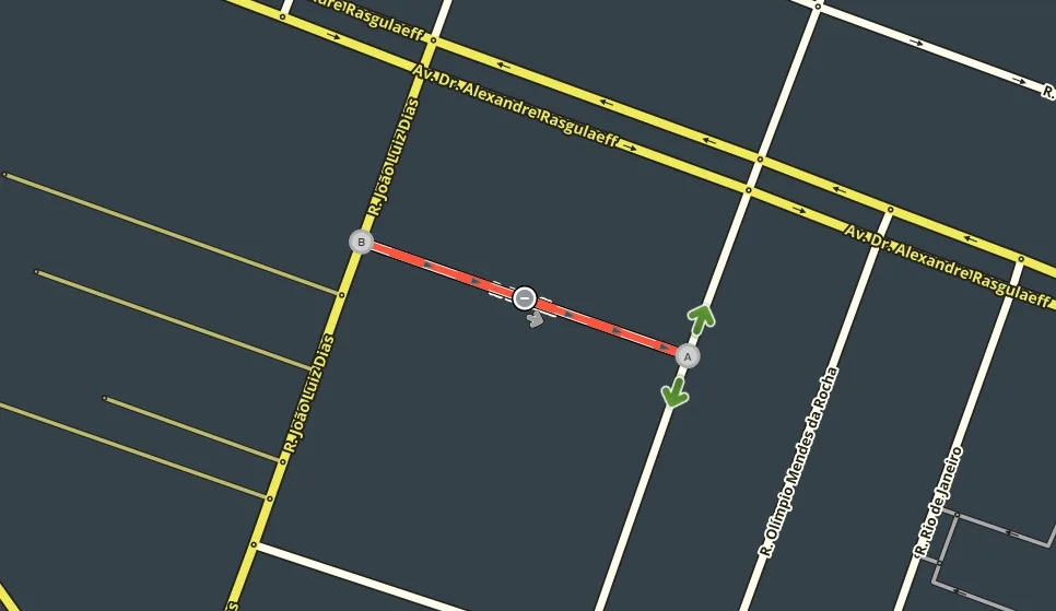 Rua Brasília com trecho que sofrerá interdições em destaque