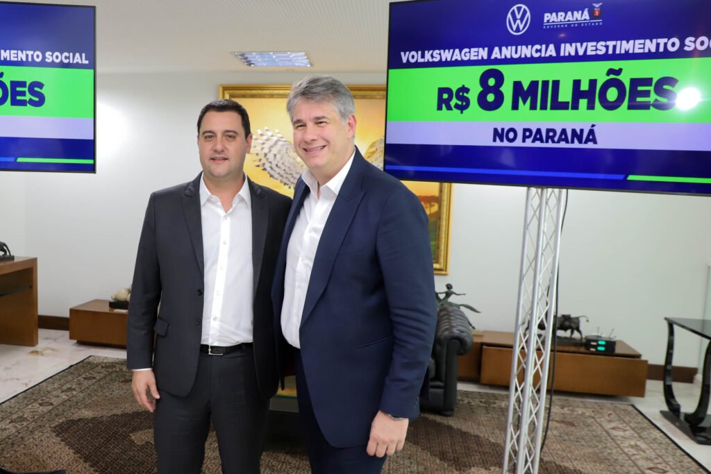 A Volkswagen do Brasil anunciou nesta segunda-feira (17) um investimento de R$ 8 milhões em projetos sociais no Paraná, durante um encontro com o governador Carlos Massa Ratinho Junior no Palácio Iguaçu, que contou com autoridades da empresa e do Estado.