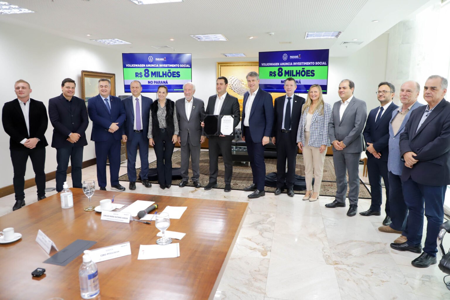 A Volkswagen do Brasil anunciou nesta segunda-feira (17) um investimento de R$ 8 milhões em projetos sociais no Paraná, durante um encontro com o governador Carlos Massa Ratinho Junior no Palácio Iguaçu, que contou com autoridades da empresa e do Estado.